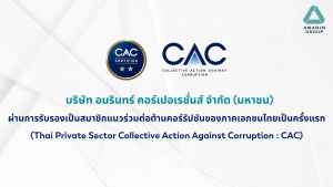 บริษัท อมรินทร์ คอร์เปอเรชั่นส์ จำกัด (มหาชน) หรือ AMARIN ประกาศเจตนารมณ์เข้าร่วมเป็นสมาชิกแนวร่วมปฏิบัติของภาคเอกชนไทยในการต่อต้านการทุจริต เมื่อวันที่ 26 มิถุนายน 2567 และผ่านการรับรองเป็นสมาชิกแนวร่วมต่อต้านคอร์รัปชันของภาคเอกชนไทย (Thai Private Sector Collective Action Against Corruption : CAC) ครั้งแรก อย่างเป็นทางการ เมื่อ 30 กันยายน 2568 AMARIN ให้ความสำคัญกับการต่อต้านทุจริตคอร์รัปชัน โดยบริษัทยึดมั่นในการดำเนินธุรกิจด้วยความซื่อสัตย์ สุจริต โปร่งใส เป็นธรรม และเป็นไปตามกฎหมายและหลักการกำกับดูแลกิจการที่ดี รวมทั้งตระหนักถึงความสำคัญในเรื่องการต่อต้านทุจริตคอร์รัปชันทุกรูปแบบ บริษัทจึงได้กำหนดนโยบายต่อต้านการทุจริตคอร์รัปชัน เพื่อเป็นแนวทางในการปฏิบัติเพื่อป้องกันและต่อต้านปัญหาทุจริตคอร์รัปชันของบริษัท โดยกรรมการ ผู้บริหาร และพนักงานของบริษัทจะไม่กระทำการหรือยอมรับการทุจริตคอร์รัปชันทั้งโดยทางตรงและทางอ้อม จะไม่สนับสนุนการทุจริตหรือคอร์รัปชันไม่ว่ากรณีใด ๆ และจะปฏิบัติตามมาตรการต่อต้านการทุจริตคอร์รัปชันของบริษัทอย่างเคร่งครัด รวมถึงบริษัทจะจัดให้มีโครงสร้างผู้รับผิดชอบและระบบการบริหารความเสี่ยงการควบคุมภายใน และการตรวจสอบภายในเพื่อป้องกันและปราบปรามการทุจริตและคอร์รัปชันภายในองค์กรอย่างเข้มงวด