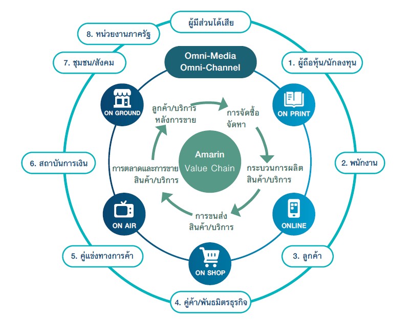 บริษัทให้ความสำคัญกับการบริหารห่วงโซ่คุณค่า (Value Chain) เพื่อส่งเสริมการเติบโตทางธุรกิจที่ยั่งยืนและสร้างคุณค่าให้กับสังคม ภายใต้แนวคิดที่ว่า “เราทำงานเพื่อความสุขและความรุ่งโรจน์ของสังคม” โดยมุ่งเน้นการดำเนินงานในทุกขั้นตอนของห่วงโซ่คุณค่า จากการจัดหาวัตถุดิบไปจนถึงการส่งมอบผลิตภัณฑ์และบริการแก่ผู้บริโภค